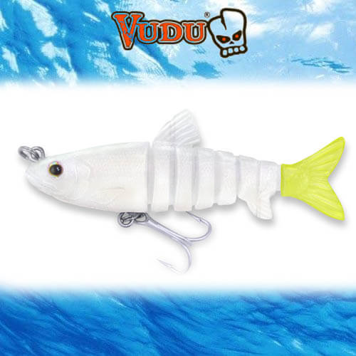 Prop 65 Warning CA Rigged with a VMC Saltwater 4.0 hook and has an internal 2/4 oz weight for great casting distance. The Vudu Mullet is a medium sink lure and best with a medium retrieve. A stop n go retrieve is very effective. Crank a few times then let it fall for a second, then crank it again. Can be burned along the surface also.