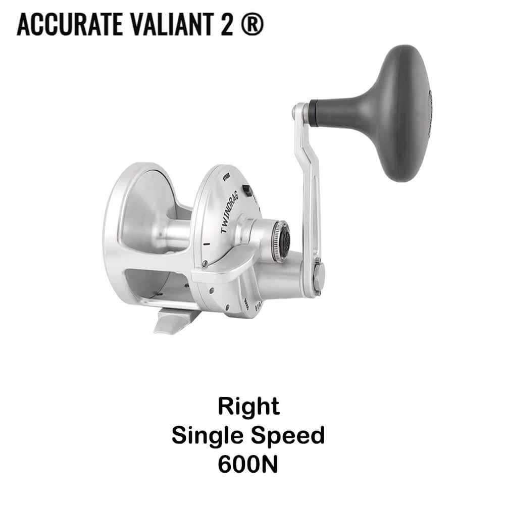 {"id":14833450746224,"title":"Accurate Valiant Two Single Speed Conventional Reels","handle":"accurate-valiant-two-single-speed-conventional-reels","description":"\u003ch2\u003eAccurate Valiant 2 Single Speed Conventional Reel\u003c\/h2\u003e\n\u003cp\u003eThe Valiant 2 is the combination of time on the water and constant innovation to take this reel to the next level. The first reel to give you all the power of a TwinDrag® lever drag reel, with the castability of a Star Drag reel. The new XCT® feature helps control the spool speed when casting while minimalizing backlashes and giving you a smooth, long cast. The Centrifugal Casting Design works once the spool starts in motion giving the angler confidence in making the right cast. Accurate has also added a couple safety features to the new V2 Valiant that include a detent in drag cam prior to free spool to alleviate problems on a fish, and a push button stop prior to full drag so fish won’t be lost while increasing the drag.\u003c\/p\u003e\n\u003cp\u003eThis reel offers all the same built in features as its predecessor including CVX Technology making it extremely lightweight and strong, built of 6061 T6 aircraft aluminum, its light and comfortable for those hours on the rail. Precision cut 17-4 Stainless gears for strength and Direcshift® Instagage system for direct shift in and out of gears. The V2 is the Accurate answer to power and castability for today’s run and gun fishing techniques. Available in both single and two speed models in sizes 300, 400, 500, 500N, 600, 600N, 800, 800N and 1000. The V2 is also available in SPJ models in both single and two speed models including 300, 500N, 600N, and 800N sizes.\u003c\/p\u003e\n\u003cp\u003e \u003c\/p\u003e\n\u003ch3\u003e\u003cspan style=\"color: rgb(255, 42, 0);\"\u003e***PART NUMBERS THAT HAVE AN \"L\" INCLUDED ARE LEFT HANDED REELS\u003c\/span\u003e\u003c\/h3\u003e\n\u003cp\u003e \u003c\/p\u003e\n\u003ch3\u003e\u003cspan style=\"color: rgb(255, 42, 0);\"\u003e***THESE ITEMS HAVE A 2-3 WEEK LEAD TIME\u003c\/span\u003e\u003c\/h3\u003e\n\u003cp\u003e \u003c\/p\u003e\n\u003ctable width=\"100%\" style=\"width: 100%; height: 407.876px;\"\u003e\n\u003ctbody\u003e\n\u003ctr style=\"height: 19.5938px;\"\u003e\n\u003ctd style=\"width: 17.6895%; height: 19.5938px;\"\u003eMODEL\u003c\/td\u003e\n\u003ctd style=\"width: 9.9278%; height: 19.5938px;\"\u003eWEIGHT\u003c\/td\u003e\n\u003ctd style=\"width: 14.9819%; height: 19.5938px;\"\u003eGEAR RATIO\u003c\/td\u003e\n\u003ctd style=\"width: 27.7978%; height: 19.5938px;\"\u003e MAX DRAG\u003c\/td\u003e\n\u003ctd style=\"width: 28.3394%; height: 19.5938px;\"\u003eLINE CAPACITY BRAID\u003c\/td\u003e\n\u003c\/tr\u003e\n\u003ctr style=\"height: 19.5938px;\"\u003e\n\u003ctd align=\"center\" style=\"width: 17.6895%; height: 19.5938px;\"\u003e\u003cspan\u003eVT-300\u003c\/span\u003e\u003c\/td\u003e\n\u003ctd align=\"center\" style=\"width: 9.9278%; height: 19.5938px;\"\u003e9.9OZ\u003c\/td\u003e\n\u003ctd align=\"center\" style=\"width: 14.9819%;\"\u003e6:1\u003c\/td\u003e\n\u003ctd align=\"center\" style=\"width: 27.7978%;\"\u003e24\u003c\/td\u003e\n\u003ctd style=\"width: 28.3394%; height: 19.5938px;\"\u003e30\/300\u003c\/td\u003e\n\u003c\/tr\u003e\n\u003ctr style=\"height: 35.5938px;\"\u003e\n\u003ctd align=\"center\" style=\"width: 17.6895%; height: 35.5938px;\"\u003e\n\u003cp\u003e\u003cspan\u003eVT-300C\u003c\/span\u003e\u003c\/p\u003e\n\u003cp\u003e\u003cspan\u003ewith clicker\u003c\/span\u003e\u003c\/p\u003e\n\u003c\/td\u003e\n\u003ctd align=\"center\" style=\"width: 9.9278%; height: 35.5938px;\"\u003e9.9OZ\u003c\/td\u003e\n\u003ctd style=\"width: 14.9819%; height: 35.5938px;\"\u003e6:1\u003c\/td\u003e\n\u003ctd style=\"width: 27.7978%; height: 35.5938px;\"\u003e24\u003c\/td\u003e\n\u003ctd style=\"width: 28.3394%; height: 35.5938px;\"\u003e30\/300\u003c\/td\u003e\n\u003c\/tr\u003e\n\u003ctr style=\"height: 39.1875px;\"\u003e\n\u003ctd style=\"width: 17.6895%; height: 39.1875px;\"\u003e\u003cspan\u003eVT-400\u003c\/span\u003e\u003c\/td\u003e\n\u003ctd style=\"width: 9.9278%; height: 39.1875px;\"\u003e14OZ\u003c\/td\u003e\n\u003ctd style=\"width: 14.9819%; height: 39.1875px;\"\u003e6:1\u003c\/td\u003e\n\u003ctd style=\"width: 27.7978%; height: 39.1875px;\"\u003e26\u003c\/td\u003e\n\u003ctd style=\"width: 28.3394%; height: 39.1875px;\"\u003e50\/425\u003c\/td\u003e\n\u003c\/tr\u003e\n\u003ctr style=\"height: 19.5938px;\"\u003e\n\u003ctd align=\"center\" style=\"width: 17.6895%;\"\u003eVT-500N\u003c\/td\u003e\n\u003ctd align=\"center\" style=\"width: 9.9278%;\"\u003e16.6OZ\u003c\/td\u003e\n\u003ctd style=\"width: 14.9819%; height: 19.5938px;\"\u003e6:1\u003c\/td\u003e\n\u003ctd style=\"width: 27.7978%; height: 19.5938px;\"\u003e30\u003c\/td\u003e\n\u003ctd style=\"width: 28.3394%; height: 19.5938px;\"\u003e50\/350\u003c\/td\u003e\n\u003c\/tr\u003e\n\u003ctr style=\"height: 19.5938px;\"\u003e\n\u003ctd align=\"center\" style=\"width: 17.6895%;\"\u003eVT-500NP\u003c\/td\u003e\n\u003ctd align=\"center\" style=\"width: 9.9278%;\"\u003e18.6OZ\u003c\/td\u003e\n\u003ctd style=\"width: 14.9819%; height: 19.5938px;\"\u003e6:1\u003c\/td\u003e\n\u003ctd style=\"width: 27.7978%; height: 19.5938px;\"\u003e30\u003c\/td\u003e\n\u003ctd style=\"width: 28.3394%; height: 19.5938px;\"\u003e50\/475\u003c\/td\u003e\n\u003c\/tr\u003e\n\u003ctr style=\"height: 19.5938px;\"\u003e\n\u003ctd align=\"center\" style=\"width: 17.6895%;\"\u003eVT-500\u003c\/td\u003e\n\u003ctd align=\"center\" style=\"width: 9.9278%;\"\u003e18OZ\u003c\/td\u003e\n\u003ctd style=\"width: 14.9819%; height: 19.5938px;\"\u003e6:1\u003c\/td\u003e\n\u003ctd style=\"width: 27.7978%; height: 19.5938px;\"\u003e30\u003c\/td\u003e\n\u003ctd style=\"width: 28.3394%; height: 19.5938px;\"\u003e65\/375\u003c\/td\u003e\n\u003c\/tr\u003e\n\u003ctr style=\"height: 19.5938px;\"\u003e\n\u003ctd align=\"center\" style=\"width: 17.6895%;\"\u003eVT-600N\u003c\/td\u003e\n\u003ctd align=\"center\" style=\"width: 9.9278%;\
