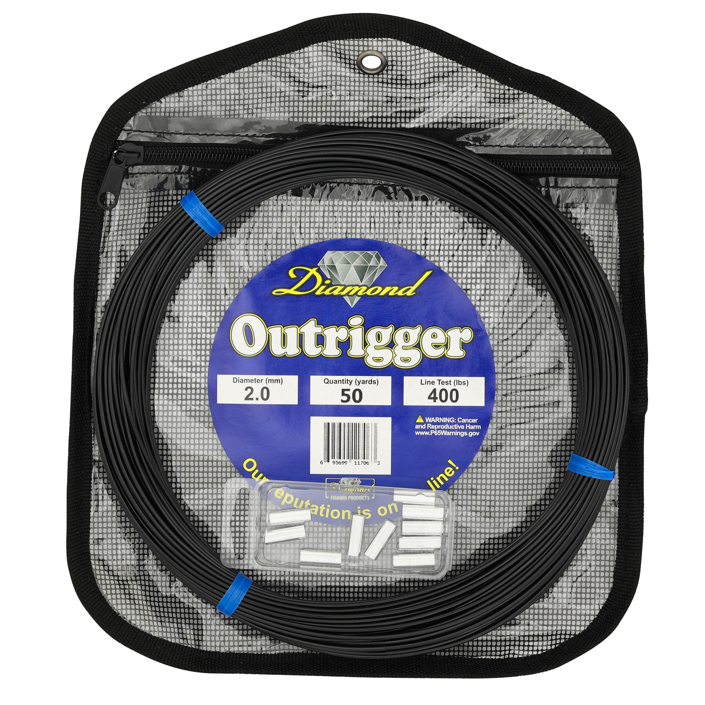 Diamond Outrigger Rigging Kits are available with either 50 or 100 yards of high quality UV resistant 400 pound test monofilament line in your choice of five colors, enough to rig any length pair of outriggers. All kits come complete with a box of the proper size sleeves and are packaged in a re-usable lure bag. This high quality line holds up to the tough standards that have made Momoi line the choice of the world’s finest fishermen and women.