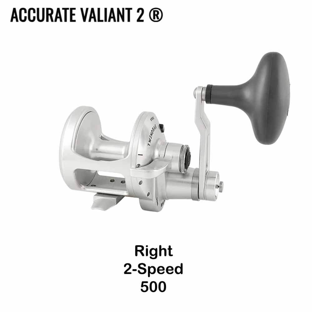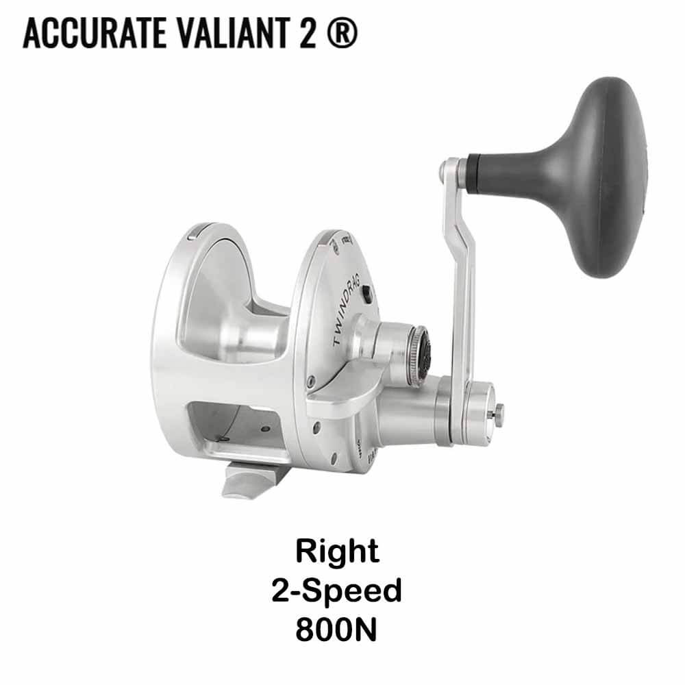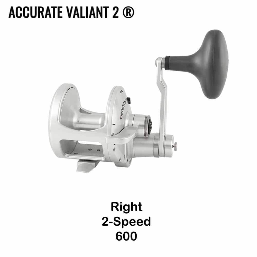{"id":14833450680688,"title":"Accurate Valiant Two 2 Speed Conventional Reels","handle":"accurate-valiant-two-2-speed-conventional-reels","description":"\u003ch2\u003eAccurate Valiant 2 Two Speed Conventional Reel\u003c\/h2\u003e\n\u003cp\u003eThe Valiant 2 is the combination of time on the water and constant innovation to take this reel to the next level. The first reel to give you all the power of a TwinDrag® lever drag reel, with the castability of a Star Drag reel. The new XCT® feature helps control the spool speed when casting while minimalizing backlashes and giving you a smooth, long cast. The Centrifugal Casting Design works once the spool starts in motion giving the angler confidence in making the right cast. Accurate has also added a couple safety features to the new V2 Valiant that include a detent in drag cam prior to free spool to alleviate problems on a fish, and a push button stop prior to full drag so fish won’t be lost while increasing the drag.\u003c\/p\u003e\n\u003cp\u003eThis reel offers all the same built in features as its predecessor including CVX Technology making it extremely lightweight and strong, built of 6061 T6 aircraft aluminum, its light and comfortable for those hours on the rail. Precision cut 17-4 Stainless gears for strength and Direcshift® Instagage system for direct shift in and out of gears. The V2 is the Accurate answer to power and castability for today’s run and gun fishing techniques. Available in both single and two speed models in sizes 300, 400, 500, 500N, 600, 600N, 800, 800N and 1000. The V2 is also available in SPJ models in both single and two speed models including 300, 500N, 600N, and 800N sizes.\u003c\/p\u003e\n\u003cp\u003e \u003c\/p\u003e\n\u003ch3\u003e\u003cspan style=\"color: rgb(255, 42, 0);\"\u003e***PART NUMBERS THAT INCLUDE AN \"L\" ARE LEFT HANDED REELS\u003c\/span\u003e\u003c\/h3\u003e\n\u003cp\u003e \u003c\/p\u003e\n\u003ch3\u003e\u003cspan style=\"color: rgb(255, 42, 0);\"\u003e***THESE ITEMS HAVE A 2-3 WEEK LEAD TIME\u003c\/span\u003e\u003c\/h3\u003e\n\u003cp\u003e \u003c\/p\u003e\n\u003ctable width=\"100%\" style=\"width: 100%; height: 407.876px;\"\u003e\n\u003ctbody\u003e\n\u003ctr style=\"height: 19.5938px;\"\u003e\n\u003ctd style=\"width: 17.6895%; height: 19.5938px;\"\u003eMODEL\u003c\/td\u003e\n\u003ctd style=\"width: 9.9278%; height: 19.5938px;\"\u003eWEIGHT\u003c\/td\u003e\n\u003ctd style=\"width: 14.9819%; height: 19.5938px;\"\u003eGEAR RATIO\u003c\/td\u003e\n\u003ctd style=\"width: 27.7978%; height: 19.5938px;\"\u003e MAX DRAG\u003c\/td\u003e\n\u003ctd style=\"width: 28.3394%; height: 19.5938px;\"\u003eLINE CAPACITY BRAID\u003c\/td\u003e\n\u003c\/tr\u003e\n\u003ctr style=\"height: 19.5938px;\"\u003e\n\u003ctd align=\"center\" style=\"width: 17.6895%;\"\u003eVT2-300C\u003c\/td\u003e\n\u003ctd align=\"center\" style=\"width: 9.9278%;\"\u003e15.7OZ\u003c\/td\u003e\n\u003ctd align=\"center\" style=\"width: 14.9819%;\"\u003e6:1\/3:1\u003c\/td\u003e\n\u003ctd align=\"center\" style=\"width: 27.7978%;\"\u003e24\u003c\/td\u003e\n\u003ctd style=\"width: 28.3394%; height: 19.5938px;\"\u003e30\/300\u003c\/td\u003e\n\u003c\/tr\u003e\n\u003ctr style=\"height: 35.5938px;\"\u003e\n\u003ctd align=\"center\" style=\"width: 17.6895%;\"\u003eVT2-400\u003c\/td\u003e\n\u003ctd align=\"center\" style=\"width: 9.9278%;\"\u003e16OZ\u003c\/td\u003e\n\u003ctd style=\"width: 14.9819%; height: 35.5938px;\"\u003e6:1\/3:1\u003c\/td\u003e\n\u003ctd style=\"width: 27.7978%; height: 35.5938px;\"\u003e26\u003c\/td\u003e\n\u003ctd style=\"width: 28.3394%; height: 35.5938px;\"\u003e50\/425\u003c\/td\u003e\n\u003c\/tr\u003e\n\u003ctr style=\"height: 39.1875px;\"\u003e\n\u003ctd align=\"center\" style=\"width: 17.6895%;\"\u003eVT2-500N\u003c\/td\u003e\n\u003ctd align=\"center\" style=\"width: 9.9278%;\"\u003e18.1OZ\u003c\/td\u003e\n\u003ctd style=\"width: 14.9819%; height: 39.1875px;\"\u003e6:1\/3:1\u003c\/td\u003e\n\u003ctd style=\"width: 27.7978%; height: 39.1875px;\"\u003e30\u003c\/td\u003e\n\u003ctd style=\"width: 28.3394%; height: 39.1875px;\"\u003e50\/350\u003c\/td\u003e\n\u003c\/tr\u003e\n\u003ctr style=\"height: 19.5938px;\"\u003e\n\u003ctd align=\"center\" style=\"width: 17.6895%;\"\u003eVT2-500NP\u003c\/td\u003e\n\u003ctd align=\"center\" style=\"width: 9.9278%;\"\u003e19.2OZ\u003c\/td\u003e\n\u003ctd style=\"width: 14.9819%; height: 19.5938px;\"\u003e6:1\/3:1\u003c\/td\u003e\n\u003ctd style=\"width: 27.7978%; height: 19.5938px;\"\u003e30\u003c\/td\u003e\n\u003ctd style=\"width: 28.3394%; height: 19.5938px;\"\u003e50\/475\u003c\/td\u003e\n\u003c\/tr\u003e\n\u003ctr style=\"height: 19.5938px;\"\u003e\n\u003ctd align=\"center\" style=\"width: 17.6895%;\"\u003eVT2-500\u003c\/td\u003e\n\u003ctd align=\"center\" style=\"width: 9.9278%;\"\u003e20.1OZ\u003c\/td\u003e\n\u003ctd style=\"width: 14.9819%; height: 19.5938px;\"\u003e6:1\/3:1\u003c\/td\u003e\n\u003ctd style=\"width: 27.7978%; height: 19.5938px;\"\u003e30\u003c\/td\u003e\n\u003ctd style=\"width: 28.3394%; height: 19.5938px;\"\u003e65\/375\u003c\/td\u003e\n\u003c\/tr\u003e\n\u003ctr style=\"height: 19.5938px;\"\u003e\n\u003ctd align=\"center\" style=\"width: 17.6895%;\"\u003eVT2-600N\u003c\/td\u003e\n\u003ctd align=\"center\" style=\"width: 9.9278%;\"\u003e19OZ\u003c\/td\u003e\n\u003ctd style=\"width: 14.9819%; height: 19.5938px;\"\u003e5:1\/2.2:1\u003c\/td\u003e\n\u003ctd style=\"width: 27.7978%; height: 19.5938px;\"\u003e32\u003c\/td\u003e\n\u003ctd style=\"width: 28.3394%; height: 19.5938px;\"\u003e65\/475\u003c\/td\u003e\n\u003c\/tr\u003e\n\u003ctr style=\"height: 19.5938px;\"\u003e\n\u003ctd align=\"center\" style=\"width: 17.6895%;\"\u003e\u003cspan\u003eVT2-600\u003c\/span\u003e\u003c\/td\u003e\n\u003ctd align=\"center\" style=\"width: 9.9278%;\"\u003e20OZ\u003c\/td\u003e\n\u003ctd style=\"width: 14.9819%; height: 19.5938px;\"\u003e5:1\/2.2:1\u003c\/td\u003e\n\u003ctd style=\"width: 27.7978%; height: 19.5938px;\"\u003e32\u003c\/td\u003e\n\u003ctd style=\"width: 28.3394%; hei