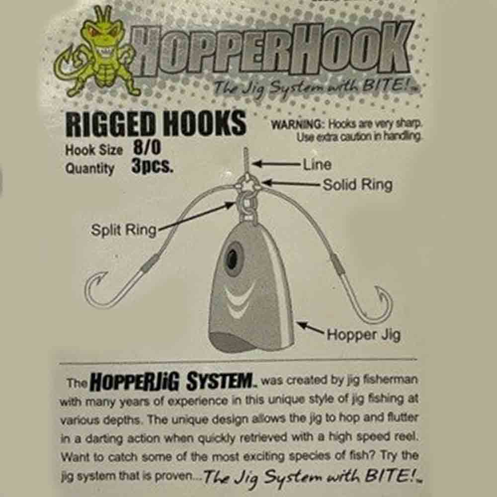The Hopper Hook Assist Rig is a great choice for any vertical, slow pitch and metal slab style jigs.  Features a J Hook and strong, durable and flexible braided dacron loop that will increase hooking power.3/0 comes in a 4pk and 8/0 through 11/0 comes in a 3pk.
