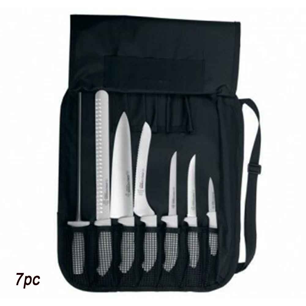 Keep your knives secure and protected with the Dexter Cutlery Case.  Each knife roll folds up for a crisp, professional, easy to use closure.  Dexter Cutlery Cases provide the solution for safe and secure knife storage, protection and transport.   Available in a 3 Piece Case and a 7 Piece Case.  The 7 Piece Case can hold up to a 12” knife and includes a carrying handle and shoulder strap.  Made in the USA.  Knives not included.