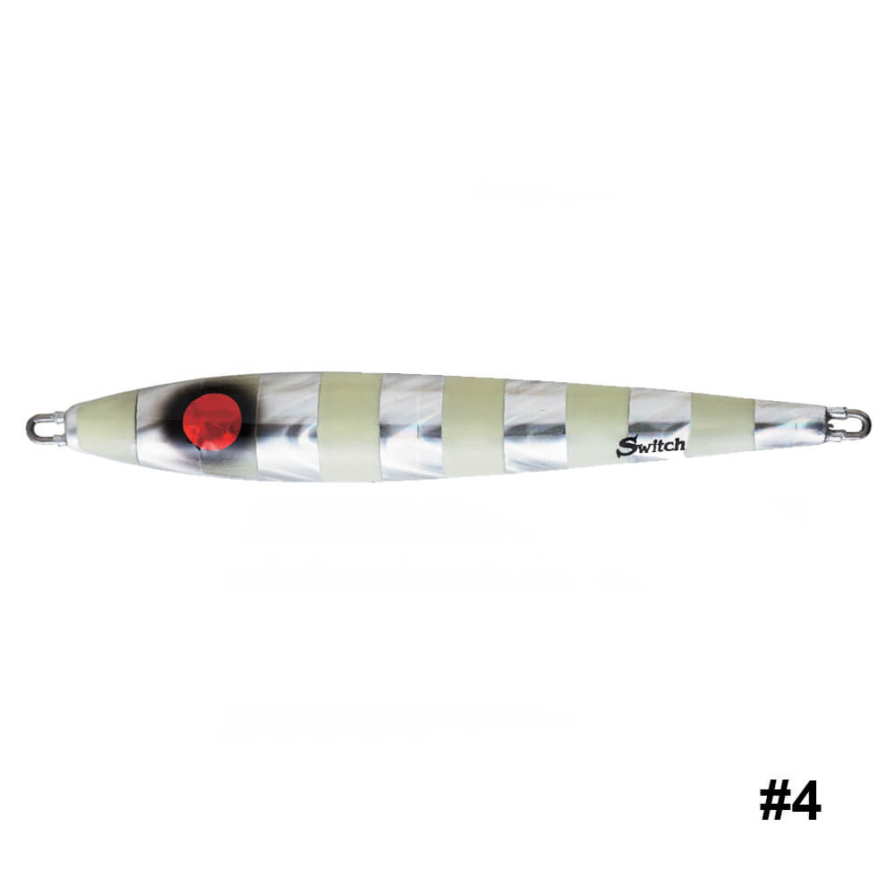 Prop 65 Warning CAFS427-200 - A new concept of all-around vertical jig with sliding fall action, great for jerking in a variety of speeds depending on activity of the fish.  The semi-center balanced toward the head and asymmetric body creates a wobble and vibration fish cannot resist. An angler may choose to work the jig on a fast pitch jerk to create a darting/sliding action or a slow pitch jerk to move the jig to a horizontal position, which allows the jig to swing more side to side mimicking dying bait fish.
