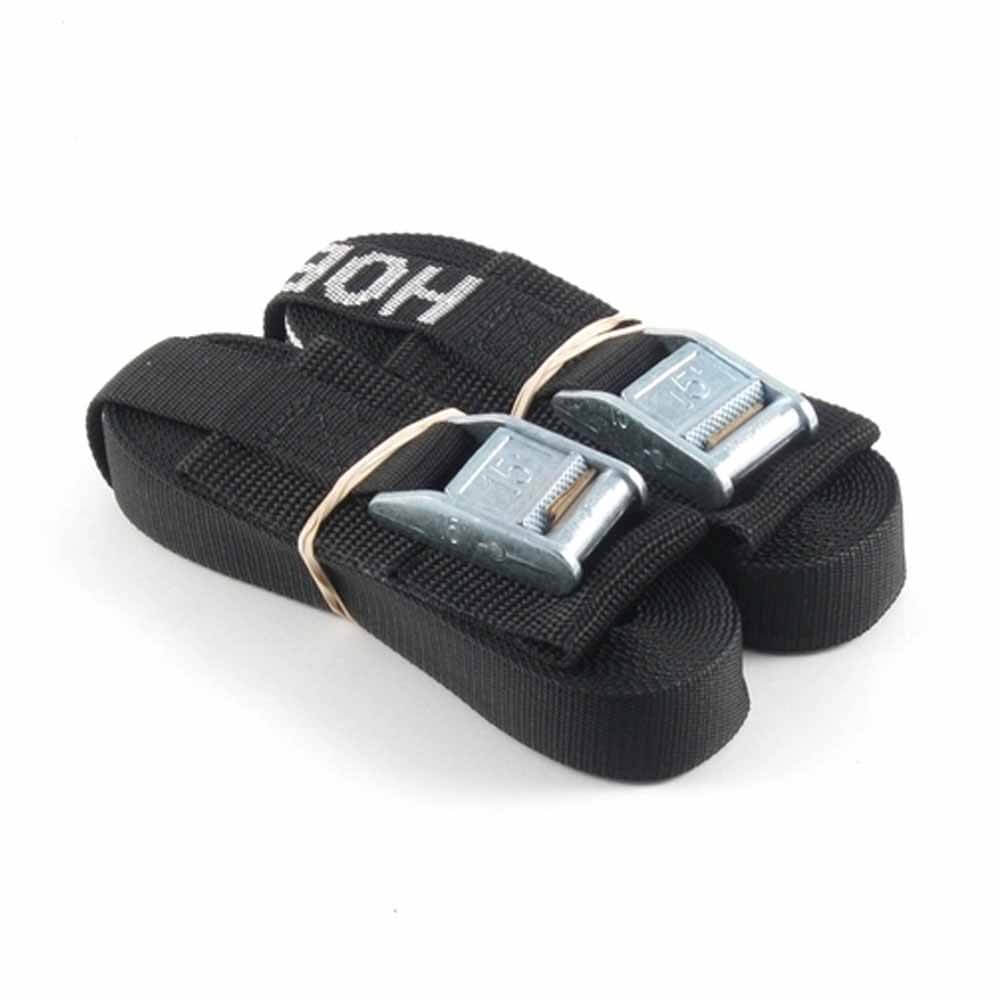 Rack tie-down straps, made of durable black polypropylene webbing. Diagonal cut and ironed ends make threading ends into buckles easier. Use This to hold down Hobie Products, great use for outdoor fishing comes in 12ft or 15ft  Prop 65 Warning CA
